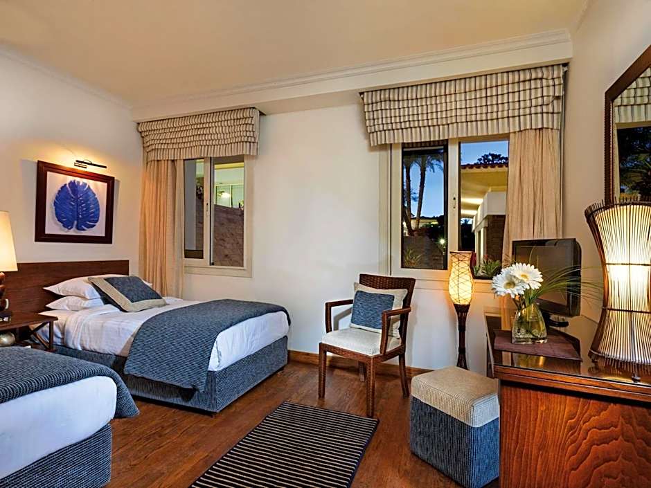 Mientras paseas por los exuberantes jardines de , la atmósfera encantadora se despliega en una sinfonía de sabores y experiencias justo en tu puerta. Sumérgete en una aventura culinaria en uno de los tres fabulosos restaurantes del complejo. La Orangerie te invita con un ambiente familiar y un toque moderno, ofreciendo un delicioso menú internacional que satisface incluso a los comensales más exigentes. ¿Te apetece una cena romántica con vistas al Nilo? Dirígete al Panorama Restaurant, donde platos exquisitos y paisajes impresionantes se combinan a la perfección para una velada inolvidable. Y si anhelas la auténtica cocina egipcia, el Mezze Egyptian Restaurant te espera con sabrosas especialidades locales que transportarán tu paladar al corazón de este magnífico país.