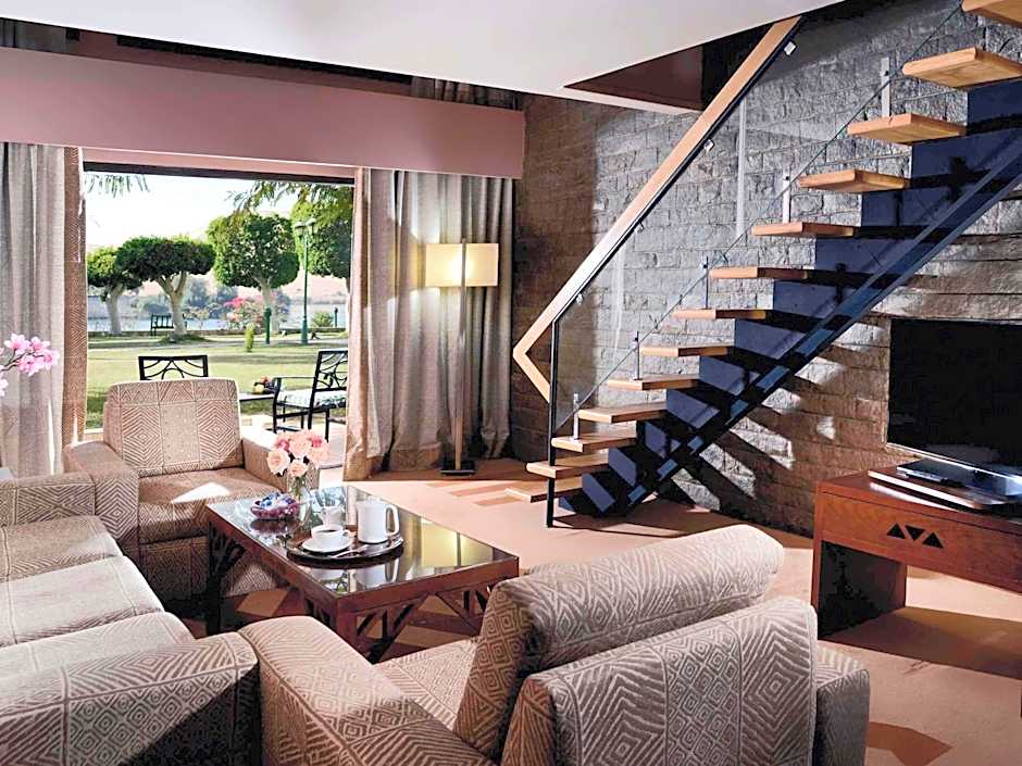 Our Duplex suite offers a direct Nile view with its warm decor and luxurious furnishing. The contemporary suite comes with average size 70 sqm and has two levels for extra convenience, the ground floor contains living area, a terrace overlooking the garden and the Nile and a private toilet, upper floor consists of twin beds, working desk and the main bathroom.